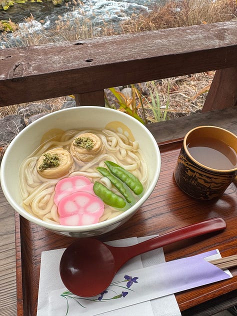 My absolute highlight of the trip was the day trip to Nikko on Christmas day. Rain had just fallen, the soil still damp and the scent of pine needles permeated the air - if I could bottle the scent of Nikko, I would - I’ve never been somewhere that smells as good as it did. It was a welcome break to the hectic city, and lunch overlooking the river was bliss. I left wishing that you could get fresh yuba here and I left Japan with a some ground sancho because of this dish.
