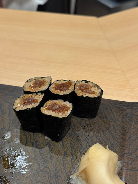 Sushi Ginza Onodera Toryumon - a standing sushi place, with a great reputation and an even longer wait time. Arrive early, just before it opens, so you can add yourself into the virtual queue (you can’t reserve ahead). It’s casual, not stuffy and you can freely talk in the teeny restaurant. They also have a kaiten (sushi train) in Omotesando that I wish I went to, apparently the quality is just as good, and tbh I really regret not going to a sushi train.