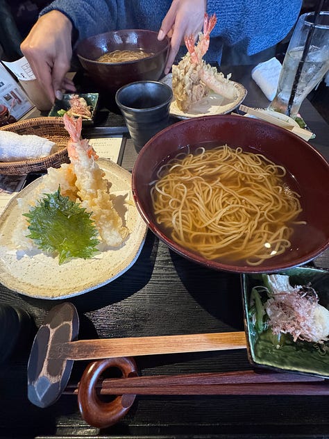 Soba-no-Mi Yoshimura: Unreal soba in broth+ tempura set. The best broth I’ve ever had, and faultless prawn tempura. I can’t stand prawn tempura that have a phat tempura coating, i need the prawn to melt as soon as i bite through the lacy coating, they’ve done it perfectly. Probably my favourite meal of the trip.