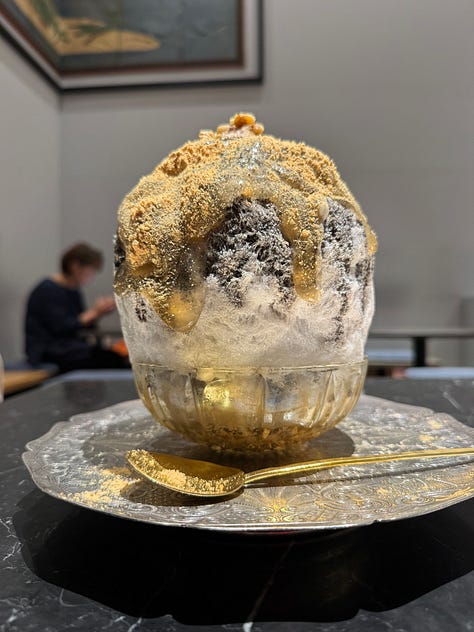 Tasuki - Whatever the weather, I think it’s worth having a Kakigōri from here. The ice is shaved so incredibly fine, like fresh snow pow. I had such a hard time figuring out what flavour to get, but ended up with black sesame with warabi mochi. There was a v welcome surprise in the middle that made it even better. Would highly recommend sharing 1 between 2 (they’re huge).